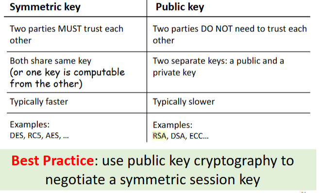 - asymmetric: Private/public key TLS handshake, slower