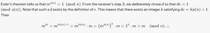 - Receiver calc mod inverse of mod . . = private key